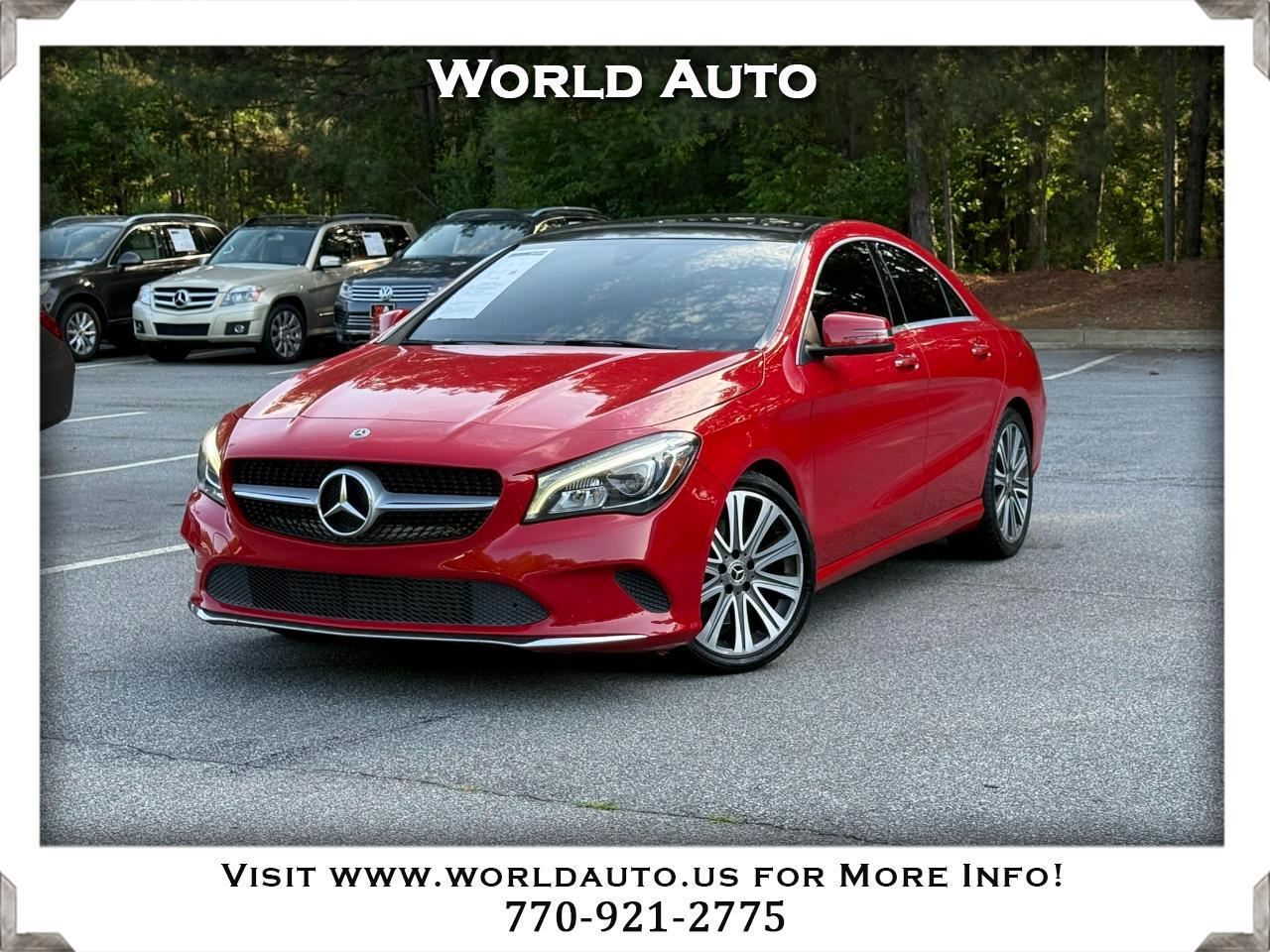 2019 MERCEDES BENZ CLA250, JUPITER RED ON BLACK, AUTOMATIC TRANSMISSION, PANORAMIC ROOF, PREMIUM PACKAGE, SMART PHONE INTEGRATION, APPLE CARPLAY, ANDROID AUTO, BLUETOOTH, BACKUP CAMERA, BLIND SPOT ASSIST, PUSH BUTTON START, KEYLESS-GO, HEATED SEATS, LED HEADLAMPS, LEATHER, CD, ALLOYS, DUAL POWER SEATS, POWER WINDOWS, POWER DOOR LOCKS, CRUISE, TILT, ABS, COLD AC, HEAT, LOADED, GOOD LOW MILES, PLEASE CONTACT WORLD AUTO FOR MORE INFORMATION AT 770-921-2775. This sleek Jupiter Red 2019 Mercedes-Benz CLA-Class is a sophisticated and stylish ride that packs a punch under the hood. With safety features like child safety door locks, multiple airbags, and vehicle anti-theft, you can drive with peace of mind knowing you're protected. The comfortable interior includes power windows, adjustable power seats with lumbar support for both driver and passenger, and a telescopic steering column for the perfect driving position. This CLA-Class is not just about getting you from point A to point B, it's about enjoying the journey along the way. Whether you're cruising through city streets or hitting the open road, this Mercedes-Benz offers a smooth and exhilarating ride that will turn heads wherever you go. Experience luxury, performance, and safety all wrapped up in one stunning package with this Jupiter Red beauty.