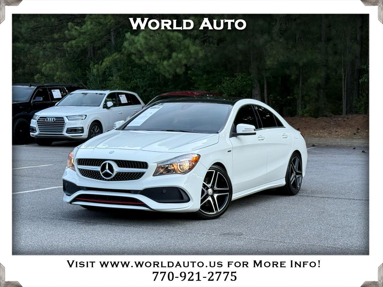 2018 MERCEDES BENZ CLA250, WHITE ON BLACK, AUTOMATIC TRANSMISSION, AMG LINE, PREMIUM PACKAGE, APPLE CARPLAY, ANDROID AUTO, BACKUP CAMERA, BLUETOOTH, BLIND SPOT ASSIST, PUSH BUTTON START, KEYLESS-GO, HEATED SEATS, LEATHER, CD, AMG WHEELS, RED SEAT BELTS, DUAL POWER SEATS, POWER WINDOWS, POWER DOOR LOCKS, CRUISE, TILT, ABS, COLD AC, HEAT, LOADED, PLEASE CONTACT WORLD AUTO FOR MORE INFORMATION AT 770-921-2775. Step into luxury with this sleek Cirrus White 2018 Mercedes-Benz CLA-Class. From the moment you slide into the driver's seat and feel the power-adjustable seating and lumbar support hug you, you'll know this car was made for comfort. The telescopic steering column ensures that you can find the perfect driving position, while the ABS brakes provide peace of mind on the road. With child safety door locks and a full array of airbags, including front, side, and head curtain, safety is a top priority in this vehicle. Rest easy knowing that the vehicle anti-theft system is always on guard. The power windows make it a breeze to let in some fresh air on a sunny day. Whether you're running errands around town or embarking on a road trip, this Mercedes-Benz CLA-Class offers both luxury and peace of mind in a stunning Cirrus White package.