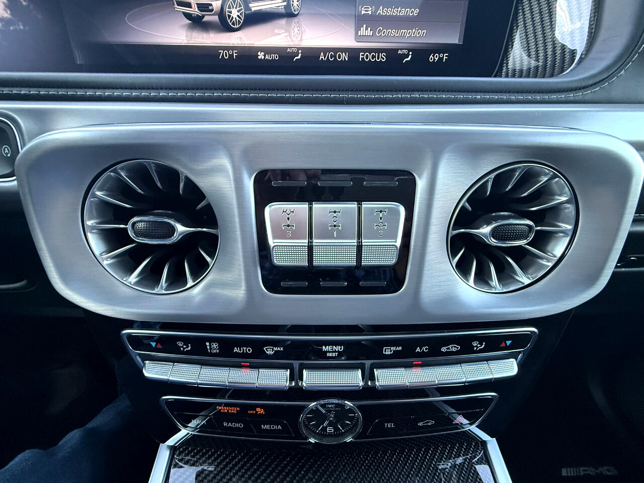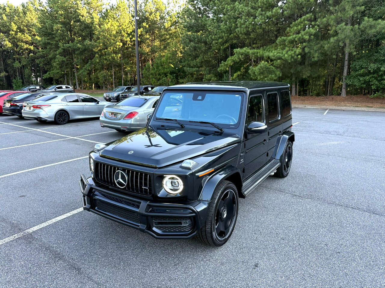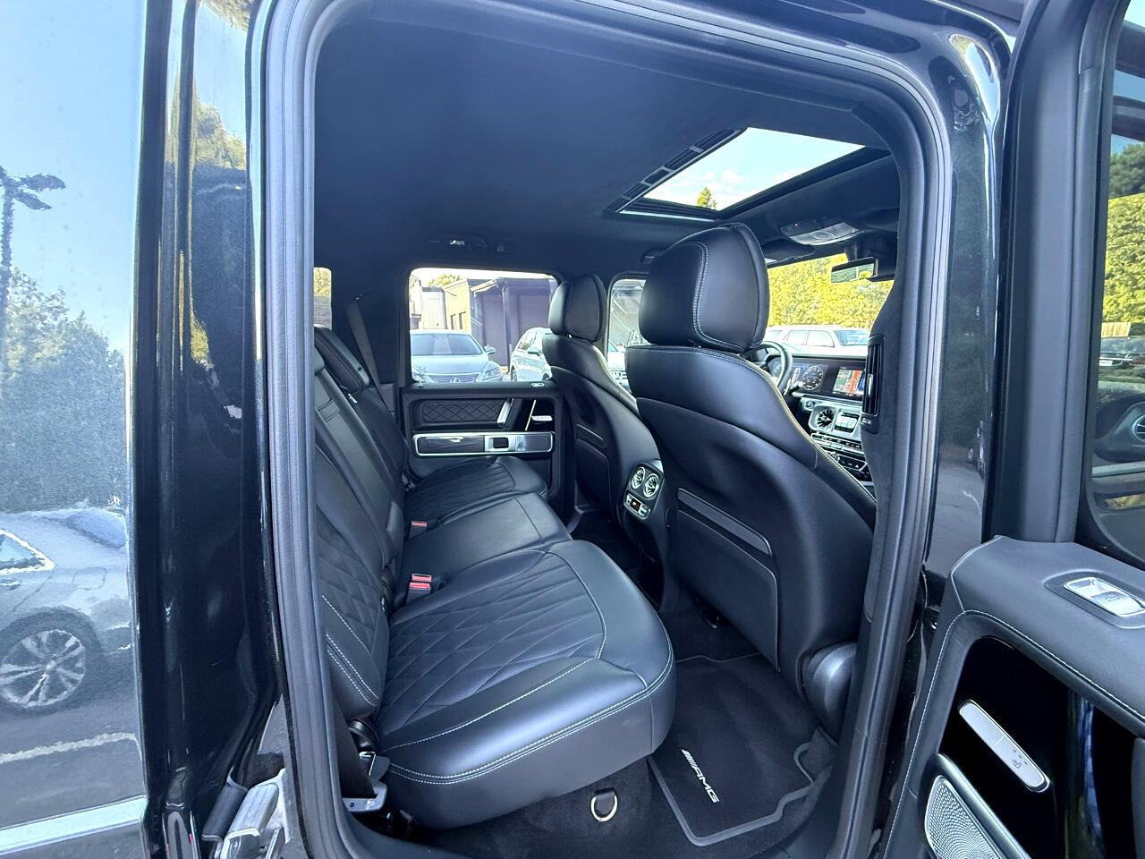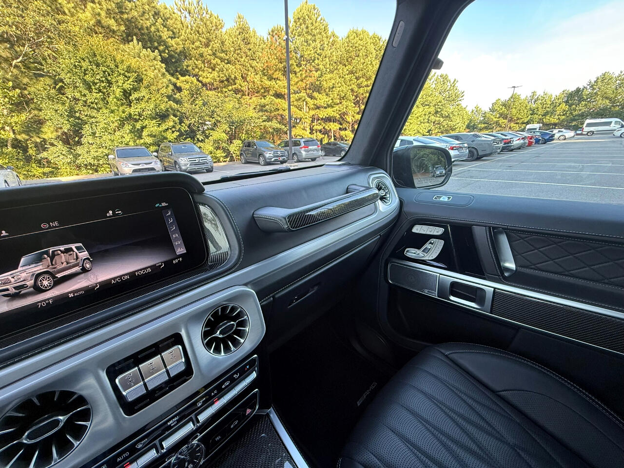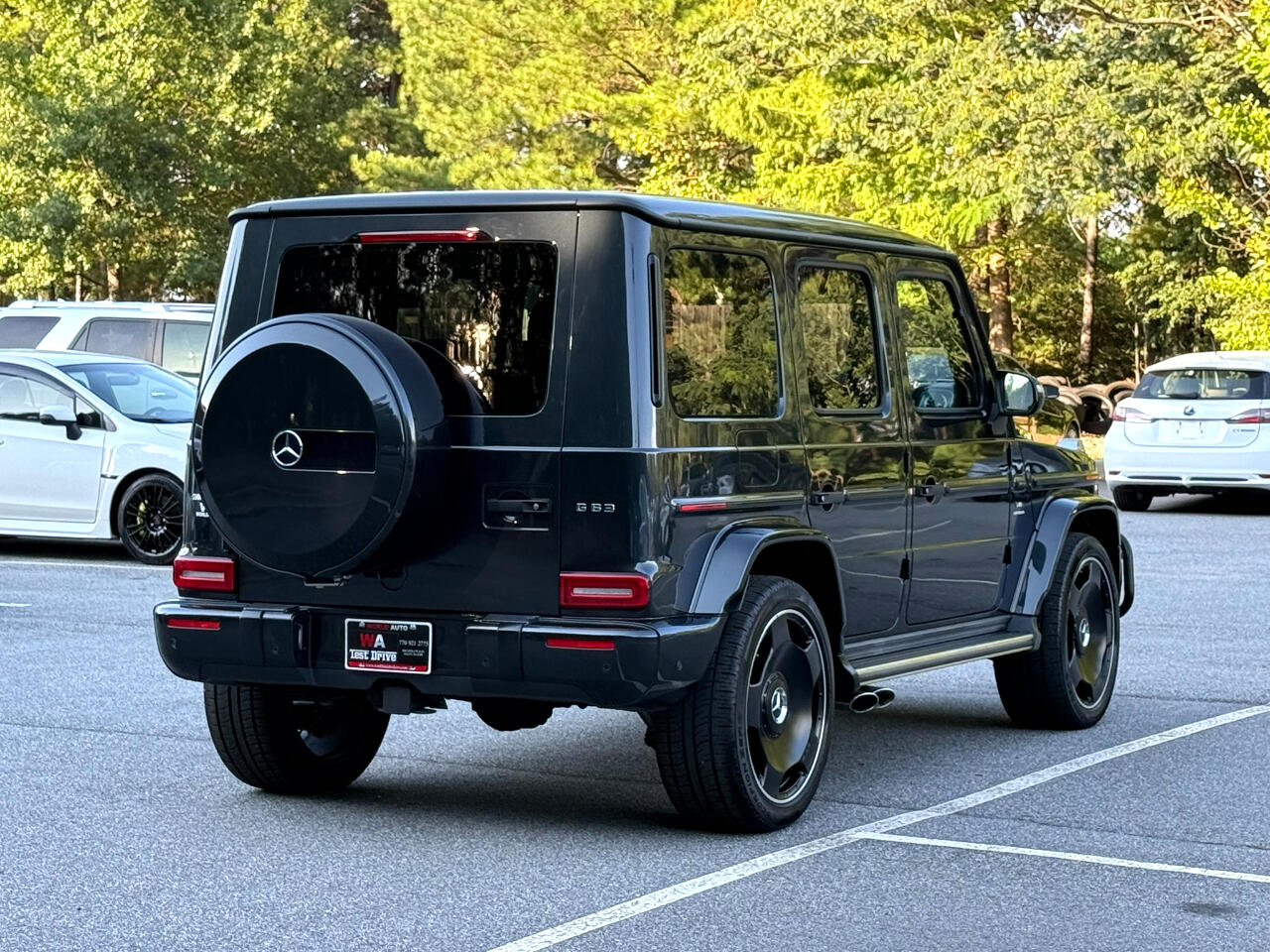 2022 MERCEDES BENZ G63 AMG, MAGNETIC BLACK METALLIC ON BLACK, AUTOMATIC TRANSMISSION, AMG PERFORMANCE PACKAGE, AMG CARBON FIBER PACKAGE, EXCLUSIVE INTERIOR PLUS PACKAGE, NAVIGATION SYSTEM, BACKUP CAMERA, SURROUND VIEW CAMERA, BLUETOOTH, PUSH BUTTON START, HEATED AND COOLING SEATS, HEATED STEERING WHEEL, REAR CLIMATE CONTROL, LEATHER, CD, SUNROOF, ALLOYS, DUAL POWER SEATS, POWER WINDOWS, POWER DOOR LOCKS, CRUISE, TILT, ABS, COLD AC, HEAT, LOADED, THIS CAR HAS MANUFACTURE BUY BACK DUE TO INFOTAINMENT SCREEN MALFUCTION WHICH WAS REPLACED BY MERCEDES BENZ AND WARRANTY BY MERCEDES FOR 1 YEAR, PLEASE CONTACT WORLD AUTO FOR MORE INFORMATION AT 770-921-2775. Buckle up for a wild ride in this Magnetite Black 2022 Mercedes-Benz G-Class! This beast of a vehicle is equipped with all the safety features to keep you secure on and off the road, including all-wheel drive, anti-lock brakes, traction control, and multiple airbags. The sleek leather seats are not only comfortable but also heated for those chilly mornings. Adjust the telescopic steering wheel and pedals to find your perfect driving position before cranking up the AM/FM radio with subwoofer for an epic sound experience. With keyless entry and remote ignition, you can start your adventure with the push of a button. Whether you're cruising down the highway or navigating rough terrain, this G-Class will get you where you need to go with ease. So blast your favorite tunes, feel the heated steering wheel in your hands, and conquer the road ahead in style and luxury!