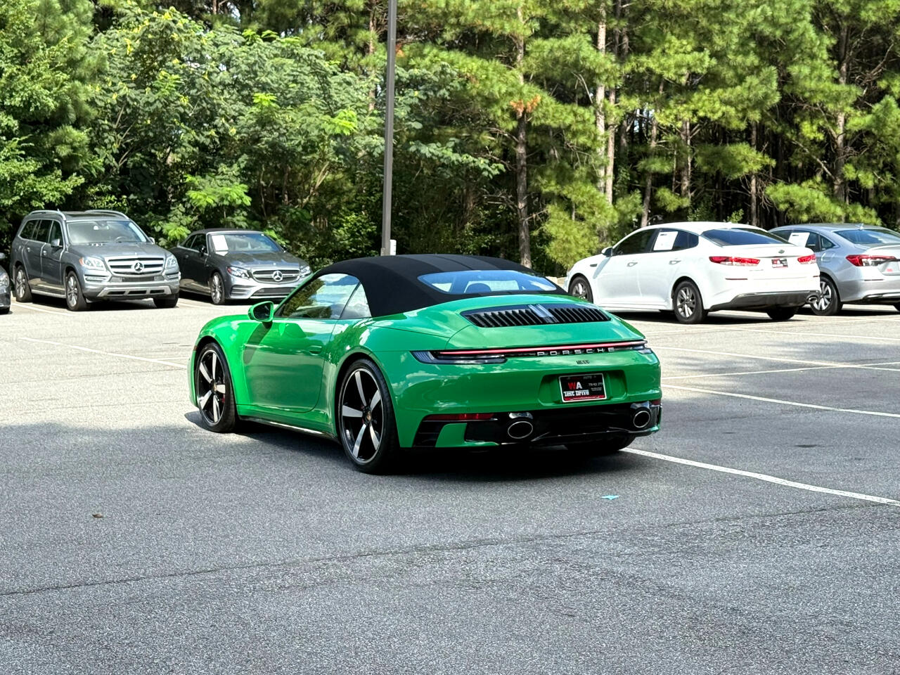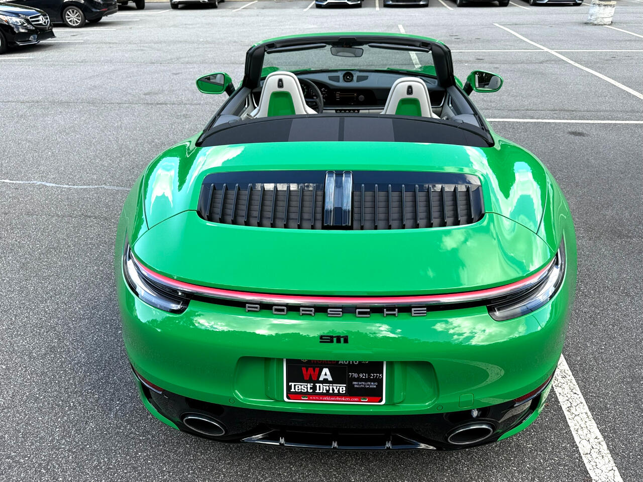 ---HIGH MSRP CAR WITH EVERY OPTION--- FULL XPEL PPF---PORSCHE WARRANTY UPTO JULY 26, 2027---2023 PORSCHE 911 S CABRIOLET, PYTHON GREEN ON SLATE GRAY/CHALK, PDK AUTOMATIC TRANSMISSION, PREMIUM PACKAGE, SPORT DESIGN PACKAGE IN HIGH GLOSS BLACK, SPORT CHRONO PACKAGE, SPORT EXHAUST SYSTEM, BURMESTER HIGH END SURROUND SYSTEM, LED-MATRIX DESIGN HEADLAMPS, PORSCHE DYNAMIC LIGHT SYTEM PLUS, SURROUND VIEW, LANE CHANGE ASSIST, DOUBLE STRIPE DECAL ON FRONT AND CABRIOLET ROOF IN BLACK, EXTENDED RANGE FUEL TANK, REAR AXLE STEERING, WHEELS PAINTED IN HIGH GLOSS BLACK, 20''/21'' CARRERA EXCLUSIVE DESIGN WHEELS, ADAPTIVE SPORT SEAT PLUS WITH MEMORY PACKAGE, CENTRAL TACHOMETER IN LIZARD GREEN, 930 LEATHER PACKAGE, PORSCHE CREST ON HEADRESTS, STEERING COLUMN CASTING MEMORY PACKAGE, SPORT SEATS PLUS BACKREST SHELLS IN LEATHER WITH PAINTED INLAY, HEATED GT SPORT STEERING WHEEL WITH TRIM IN MATTE CARBON FIBER, DASHBOARD WITH DEVIATED STITCHING, CENTER CONSOLE LID WITH DECIATED STITCHING, KNEE PAD WITH DEVIATED STITCHING, DEVIATED STITCHING INTERIOR PACKAGE, LANE KEEP ASSIST TRAFFIC SIGN RECOGNITION, ADAPTIVE CRUISE CONTROL, PREPARATION FOR PORSCHE DASHCAM, POWER TOP, POWER WINDOWS, POWER DOOR LOCK, STOP AAND GO CRUISE CONTROL, DUAL POWER SEATS, LOADED WITH OPTIONS, PLEASE CONTACT WORLD AUTO FOR MORE INFORMATION AT 770-921-2775.