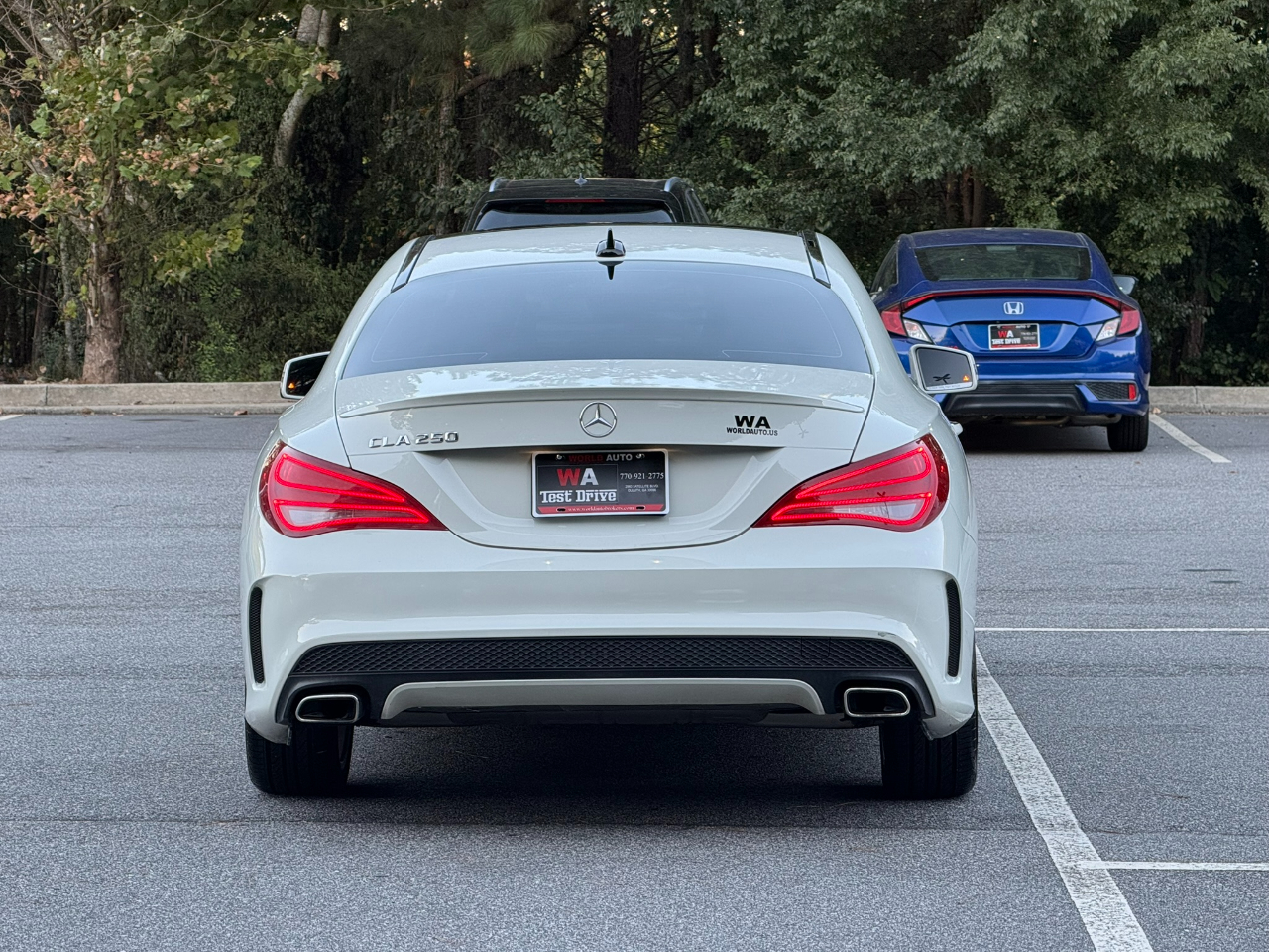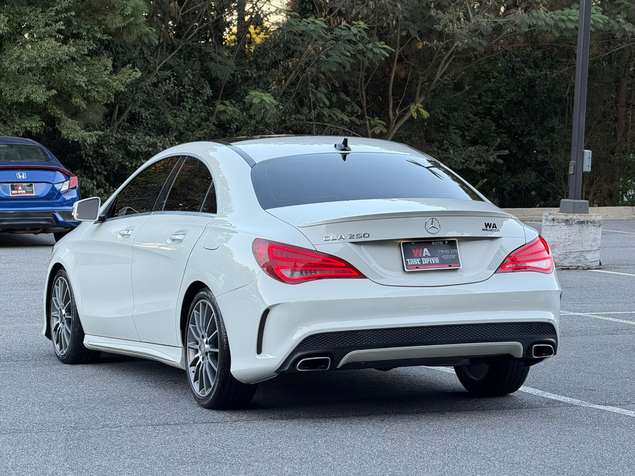 2016 MERCEDES BENZ CLA250, WHITE ON BLACK, AUTOMATIC TRANSMISSION, SPORT PACKAGE, PREMIUM PACKAGE, AMG WHEELS, KEYLESS-GO, PUSH BUTTON START, ILLUMINATED STAR, NAVIGATION SYSTEM, BACKUP CAMERA, BLUETOOTH, BLIND SPOT ASSIST, LEATHER, CD, REMOTE KEYLESS, HEATED SEATS, POWER WINDOWS, POWER DOOR LOCKS, CRUISE, TILT, ABS, COLD AC, HEAT, LOADED, PLEASE CONTACT WORLD AUTO FOR MORE INFORMATION AT 770-921-2775.
