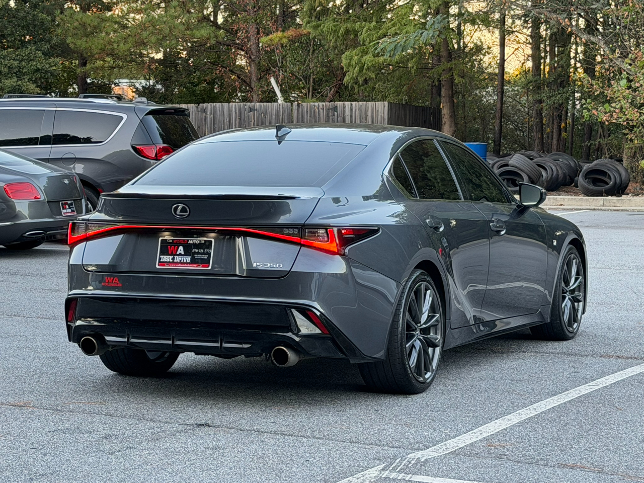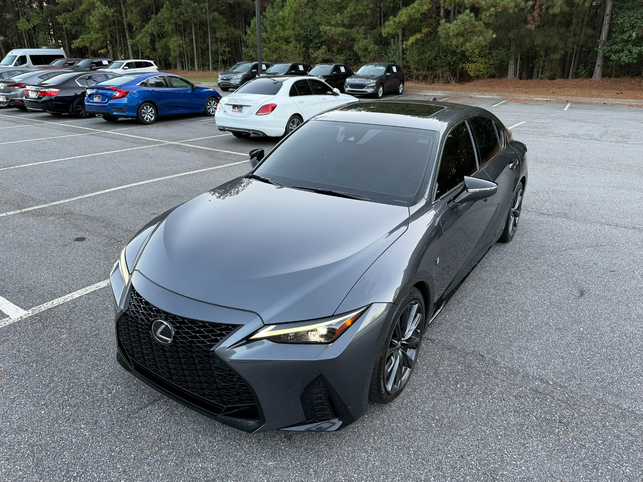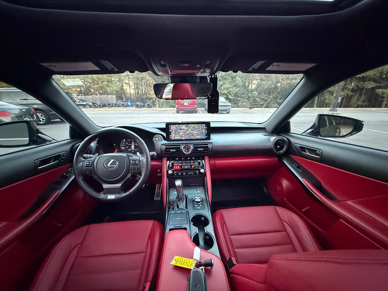 2023 LEXUS IS350 F-SPORT, CLOUDBURST GRAY ON RED, AUTOMATIC TRANSMISSION, NAVIGATION SYSTEM, APPLE CARPLAY, ANDROID AUTO, BACKUP CAMERA, SURROUD VIEW CAMERA, BLUETOOTH, PUSH BUTTON START, KEYLESS-GO, INTUITIVE PARKING ASSIST, BLIND SPOT ASSIST, RADAR CRUISE CONTROL, LEATHER, ALLOYS, SUNROOF, HEATED AND VENITLATED SEATS, HEATED STEERING WHEEL, DUAL POWER SEATS, POWER WINDOWS, POWER DOOR LOCKS, CRUISE, TILT, ABS, COLD AC, HEAT, LOADED, PLEASE CONTACT WORLD AUTO FOR MORE INFORMATION AT 770-921-2775. Step into luxury with this Cloudburst Gray 2023 Lexus IS. Feel the power of the smooth ride and advanced safety features that give you peace of mind every time you hit the road. Whether you're cruising around town or embarking on a road trip, this sleek sedan provides the ultimate comfort with its adjustable foot pedals, leather seats, and separate climate controls. Let the music surround you with the AM/FM radio and subwoofer, while the steering wheel mounted controls keep your focus on the road ahead. The automatic headlights and daytime running lights ensure that you can see and be seen in any condition. Plus, with keyless entry and remote ignition, convenience is at your fingertips. Whether you're a solo driver or on a family adventure, this Lexus IS has all the features you need for a smooth and enjoyable ride.