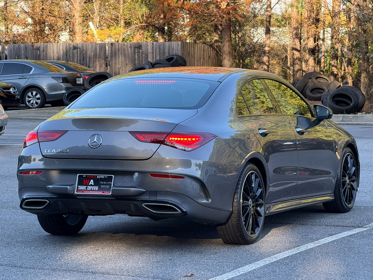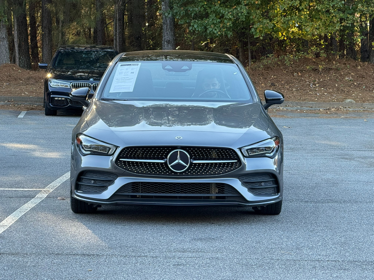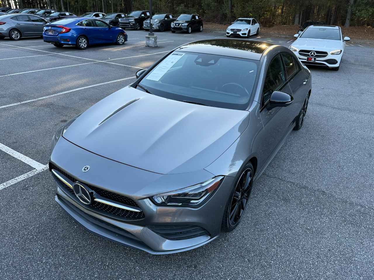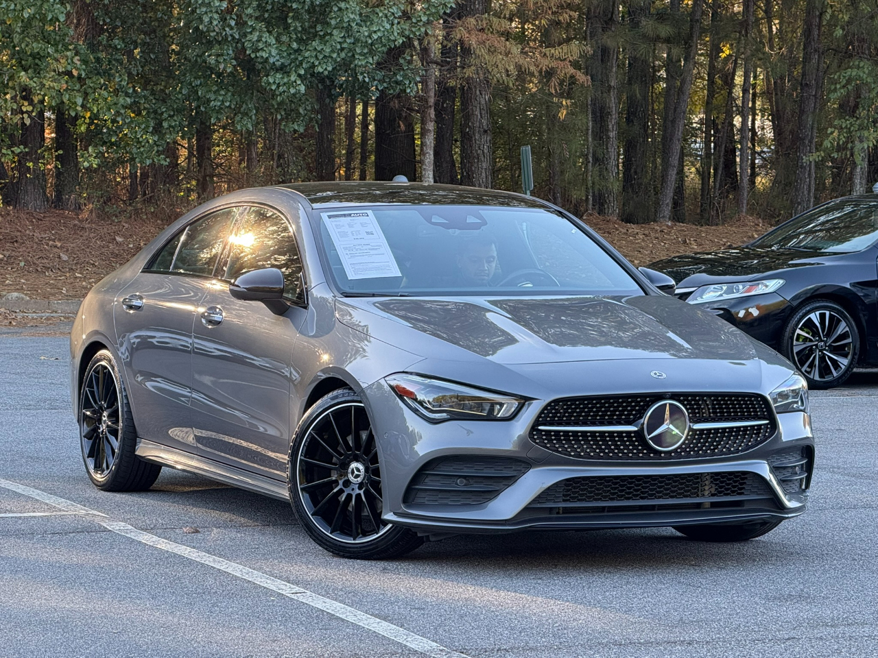 2023 Mercedes-Benz CLA 250 Mountain Grey Metallic over black with red stitching MB-Tex/Dinamica interior. equipped with AMG line package featuring AMG body styling, sport seats, AMG sport pedals, and multifunction nappa leather steering wheel. premium package with keyless-go, 10.25" digital instrument cluster, media display touchscreen, hands-free access, and power folding mirrors. multimedia package with MBUX augmented video, navigation, and traffic sign assist. parking assistance package with active parking assist and 360° surround view. exterior lighting package with active LED headlamps and adaptive highbeam assist. night package with high-gloss black accents and trim. 19" AMG multi-spoke black alloy wheels with summer tires, lowered comfort suspension, heated front seats, SiriusXM radio, garage door opener, rear side airbags, and more. a perfect blend of sport, style, and technology. This car has a Manufacturer BuyBack history. Please contact World Auto for more information at 770-921-2775.
