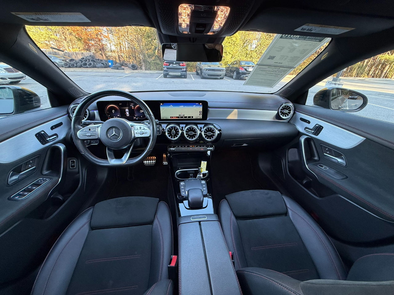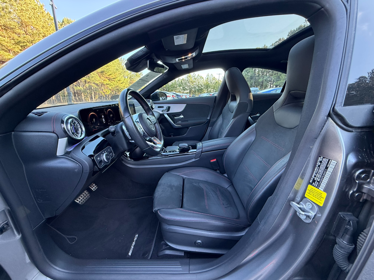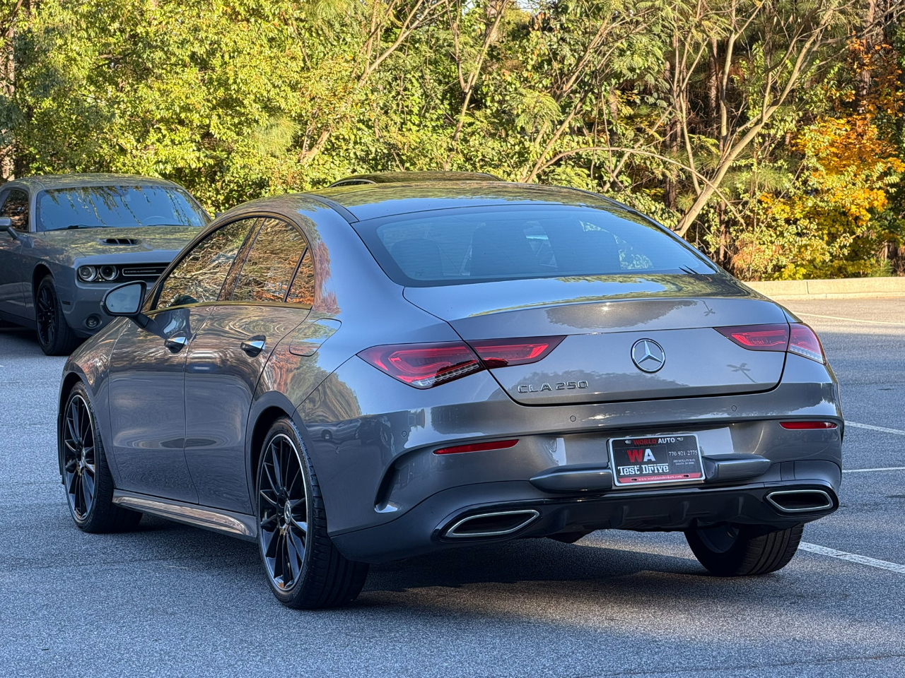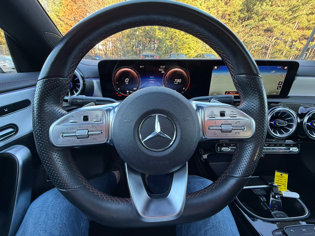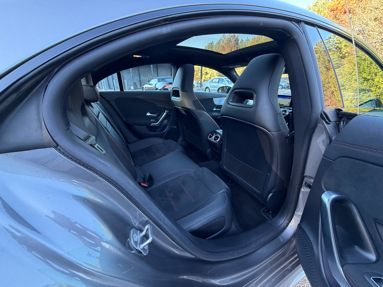 2023 Mercedes-Benz CLA 250 Mountain Grey Metallic over black with red stitching MB-Tex/Dinamica interior. equipped with AMG line package featuring AMG body styling, sport seats, AMG sport pedals, and multifunction nappa leather steering wheel. premium package with keyless-go, 10.25" digital instrument cluster, media display touchscreen, hands-free access, and power folding mirrors. multimedia package with MBUX augmented video, navigation, and traffic sign assist. parking assistance package with active parking assist and 360° surround view. exterior lighting package with active LED headlamps and adaptive highbeam assist. night package with high-gloss black accents and trim. 19" AMG multi-spoke black alloy wheels with summer tires, lowered comfort suspension, heated front seats, SiriusXM radio, garage door opener, rear side airbags, and more. a perfect blend of sport, style, and technology. This car has a Manufacturer BuyBack history. Please contact World Auto for more information at 770-921-2775.