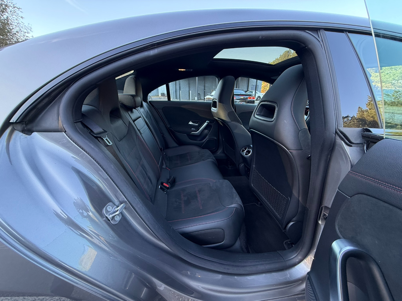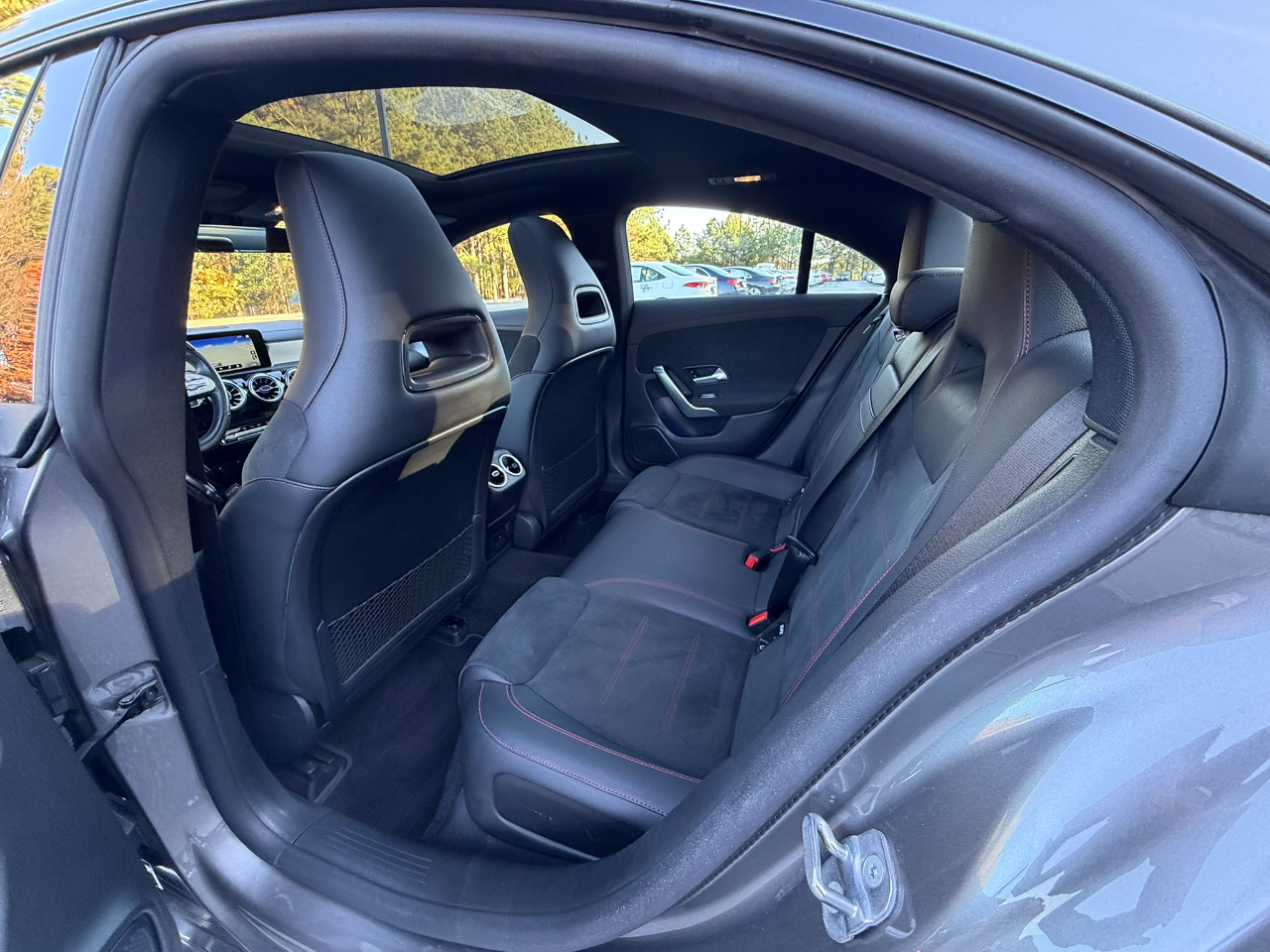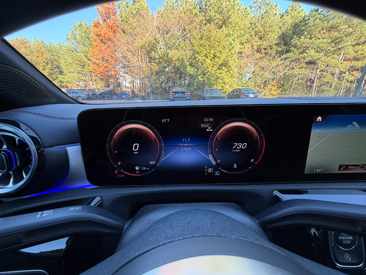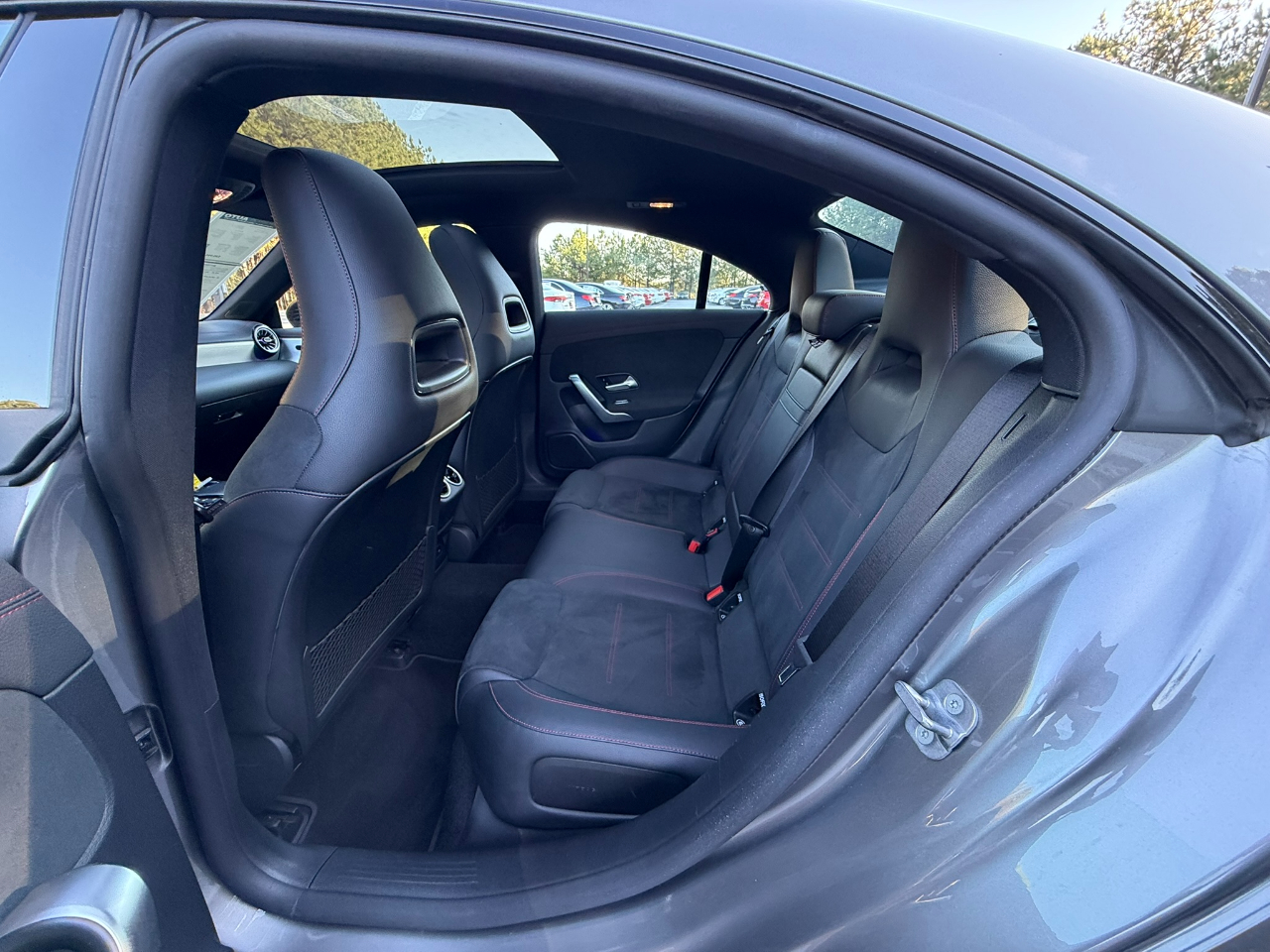 2023 Mercedes-Benz CLA 250 Mountain Grey Metallic over black with red stitching MB-Tex/Dinamica interior. equipped with AMG line package featuring AMG body styling, sport seats, AMG sport pedals, and multifunction nappa leather steering wheel. premium package with keyless-go, 10.25" digital instrument cluster, media display touchscreen, hands-free access, and power folding mirrors. multimedia package with MBUX augmented video, navigation, and traffic sign assist. parking assistance package with active parking assist and 360° surround view. exterior lighting package with active LED headlamps and adaptive highbeam assist. night package with high-gloss black accents and trim. 19" AMG multi-spoke black alloy wheels with summer tires, lowered comfort suspension, heated front seats, SiriusXM radio, garage door opener, rear side airbags, and more. a perfect blend of sport, style, and technology. This car has a Manufacturer BuyBack history. Please contact World Auto for more information at 770-921-2775.