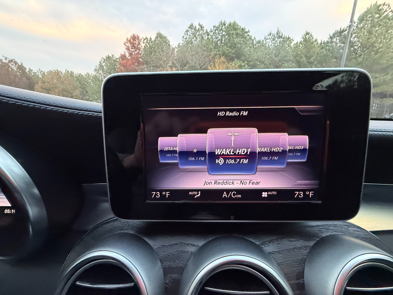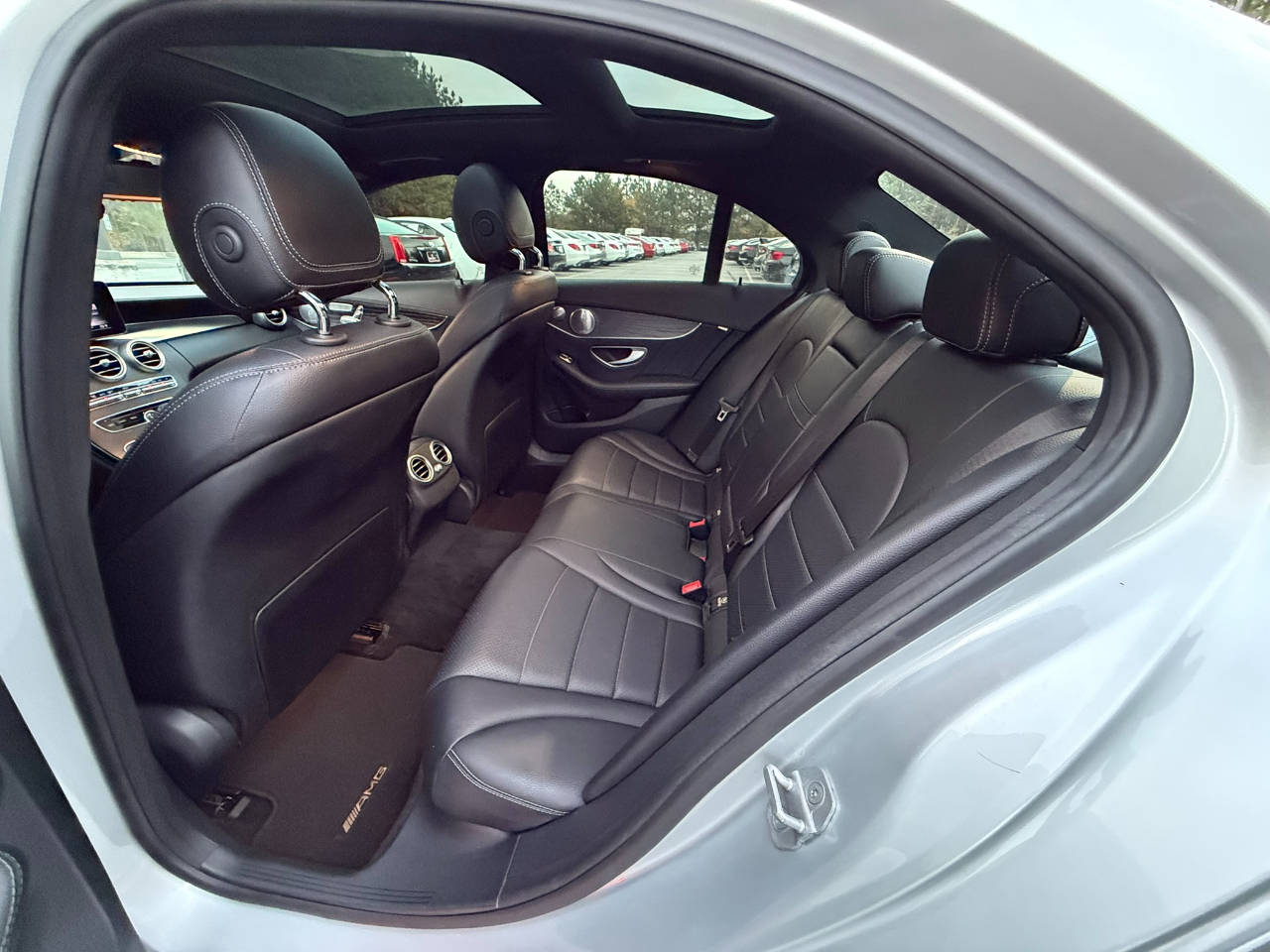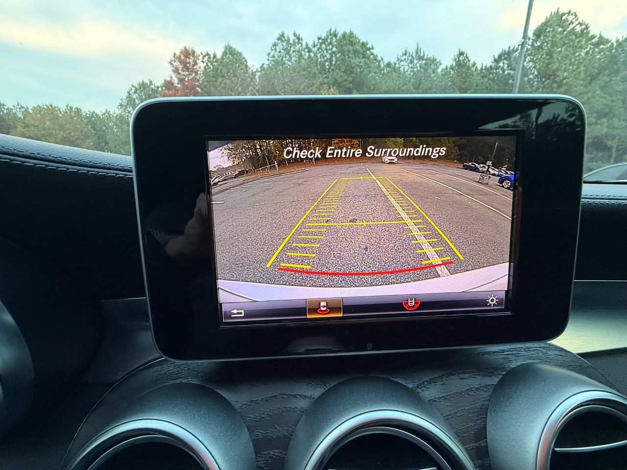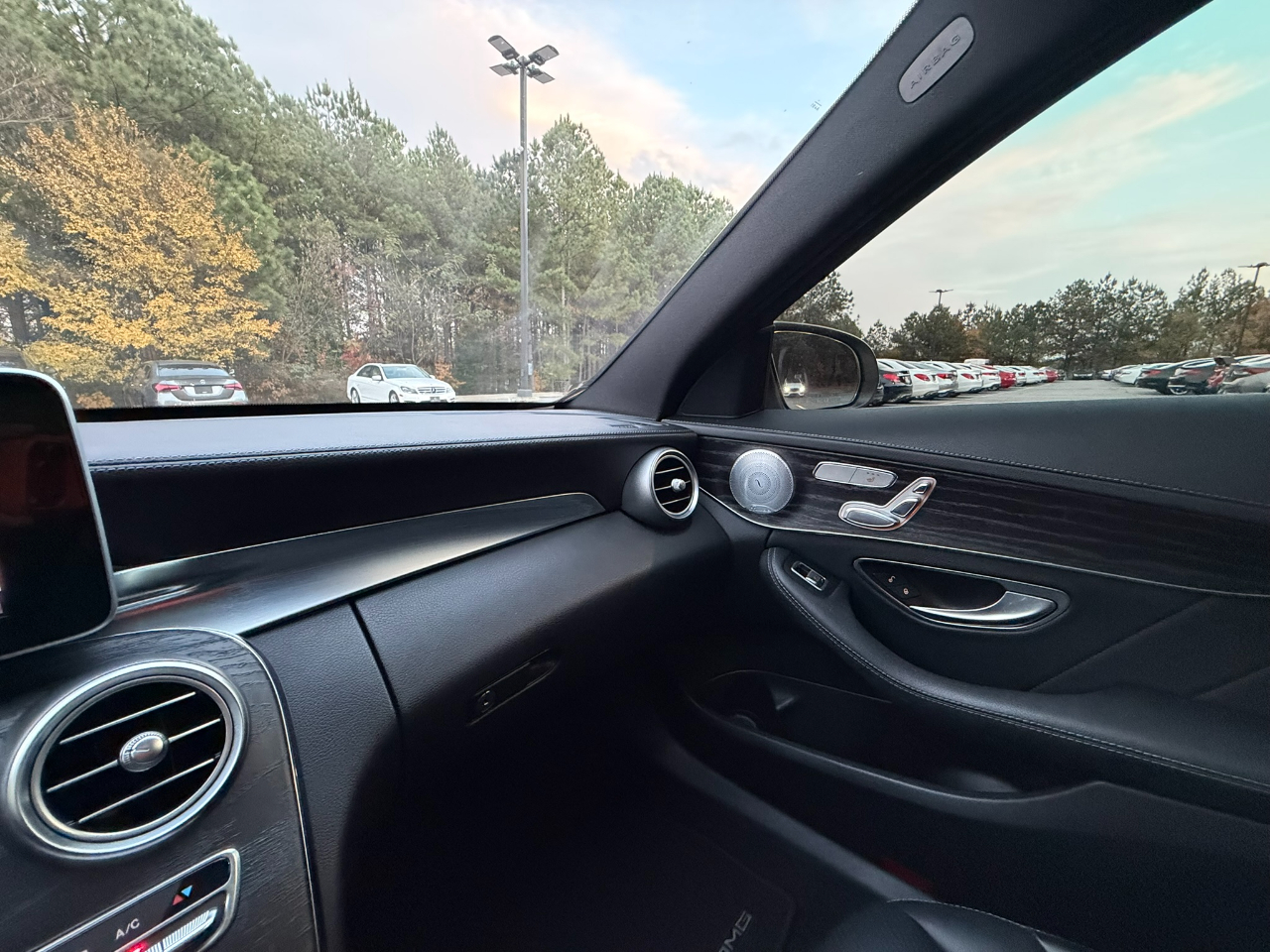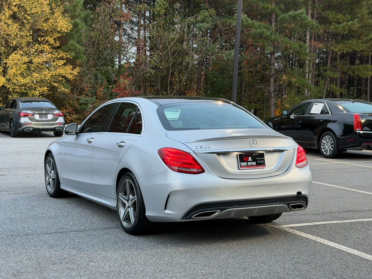2015 Mercedes-Benz C300 finished in iridium silver metallic and equipped with the sought-after sport package featuring AMG bodystyling, sport suspension, 18"/19" AMG wheels with high-performance tires, open pore black ash trim, black headliner, sport seats, flat-bottom steering wheel, perforated front brake discs, aluminum pedals, and AMG floormats with MB-Tex dash stitching. Enjoy premium upgrades, including the panorama sunroof, Burmester premium sound, SiriusXM, keyless go, LED headlamps and taillights, heated front seats, blind spot assist, rearview camera, rear deck spoiler, analog dash clock, and wheel locks. sleek, sporty, and fully loaded