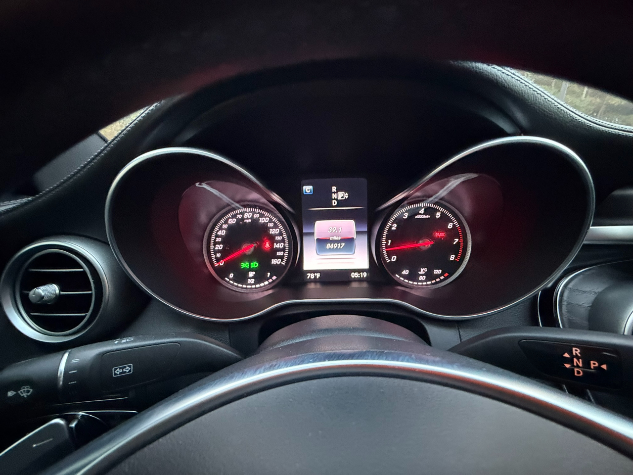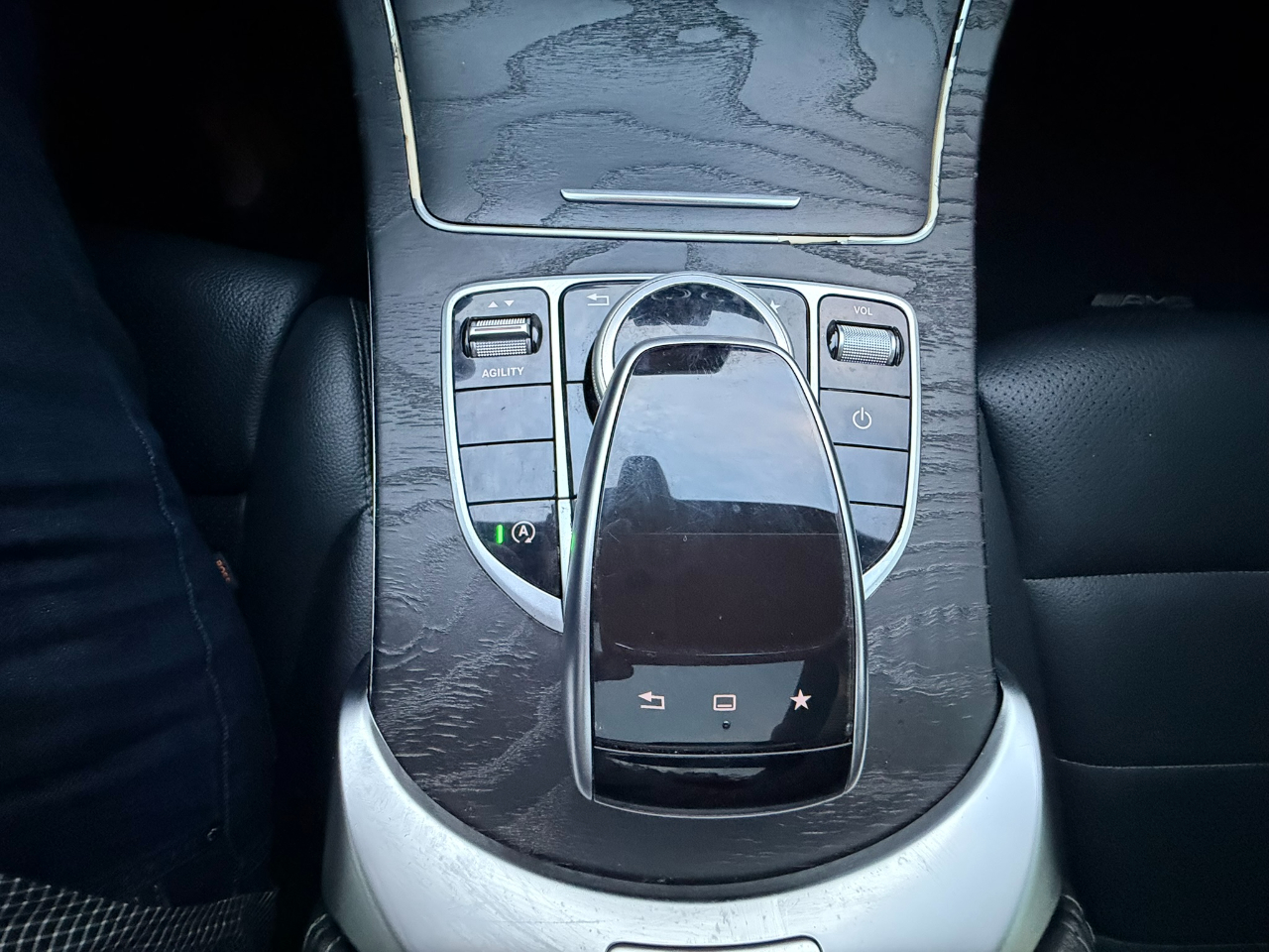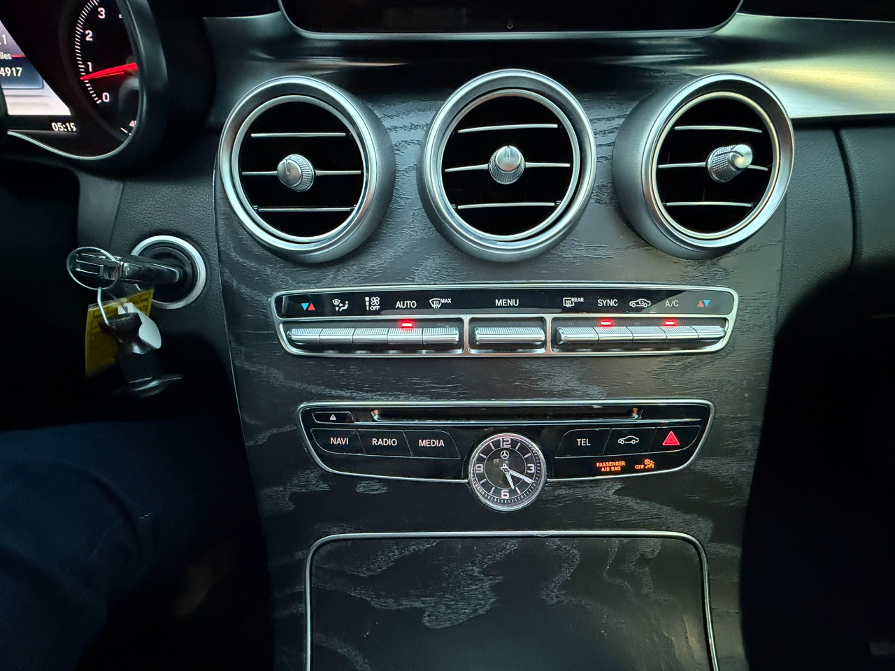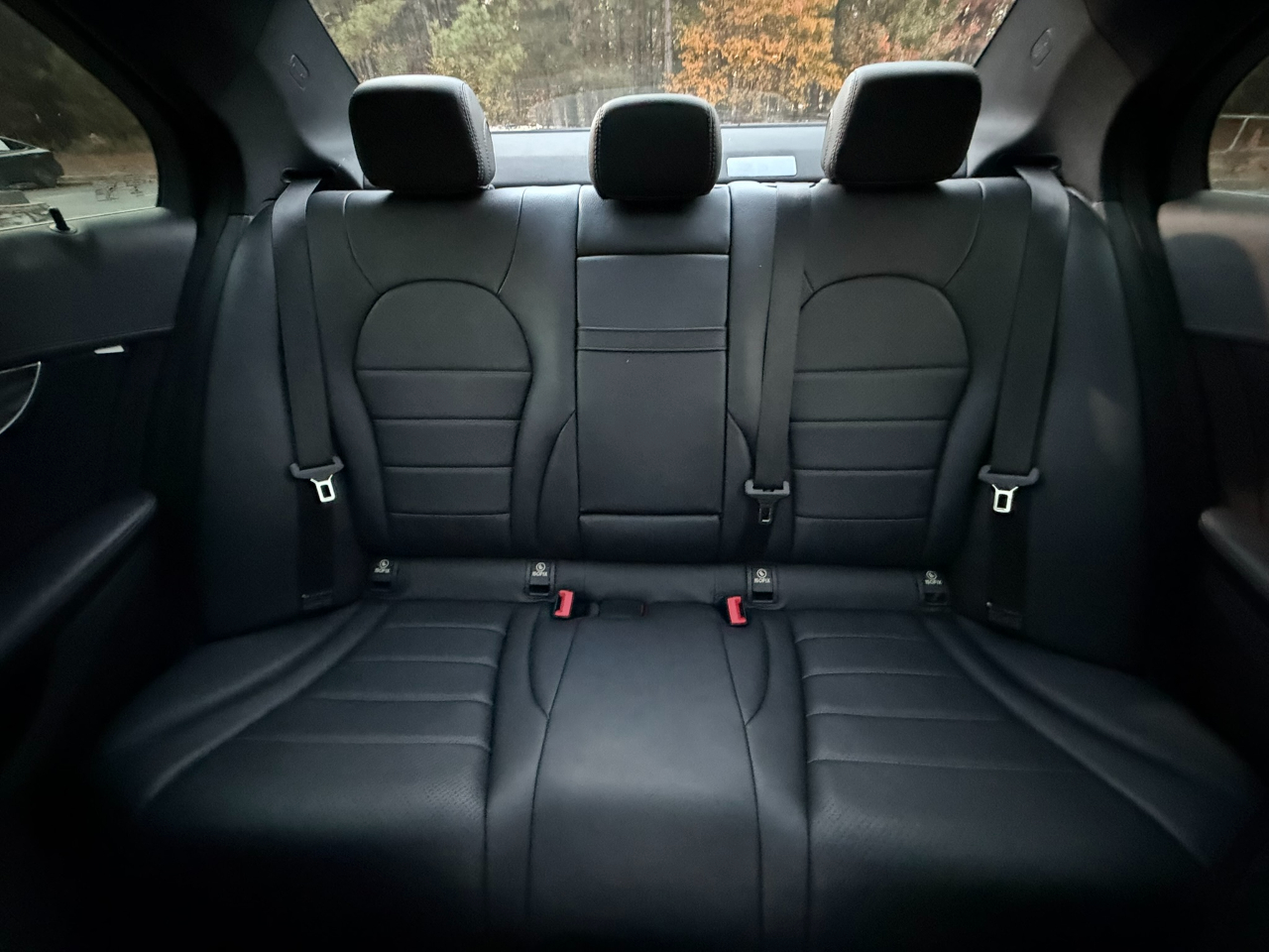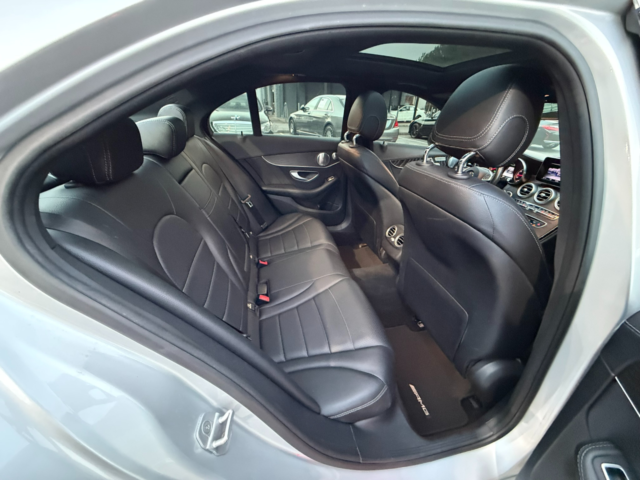 2015 Mercedes-Benz C300 finished in iridium silver metallic and equipped with the sought-after sport package featuring AMG bodystyling, sport suspension, 18"/19" AMG wheels with high-performance tires, open pore black ash trim, black headliner, sport seats, flat-bottom steering wheel, perforated front brake discs, aluminum pedals, and AMG floormats with MB-Tex dash stitching. Enjoy premium upgrades, including the panorama sunroof, Burmester premium sound, SiriusXM, keyless go, LED headlamps and taillights, heated front seats, blind spot assist, rearview camera, rear deck spoiler, analog dash clock, and wheel locks. sleek, sporty, and fully loaded