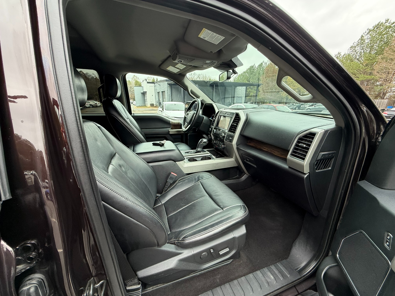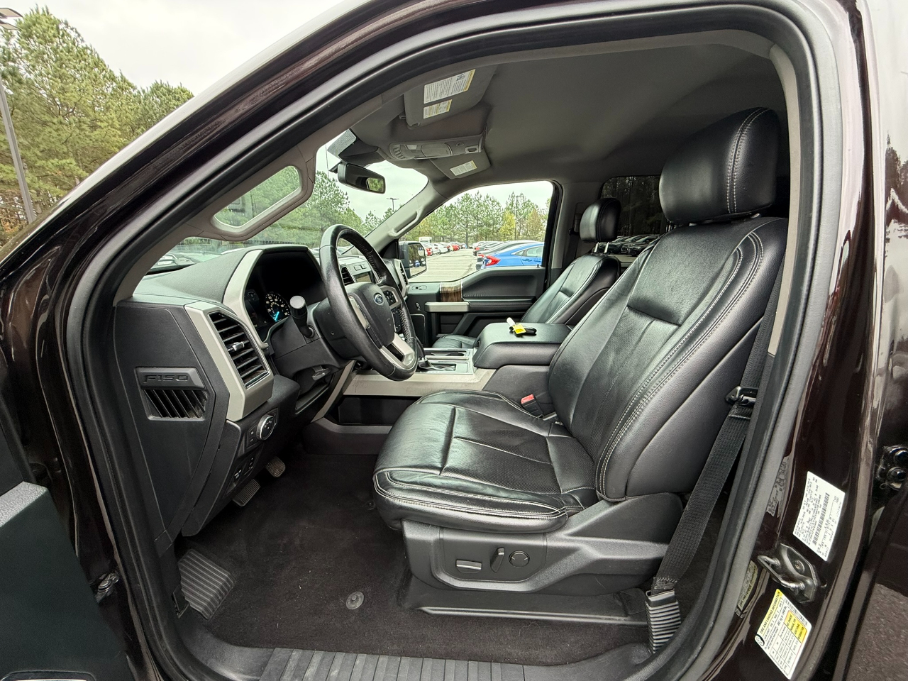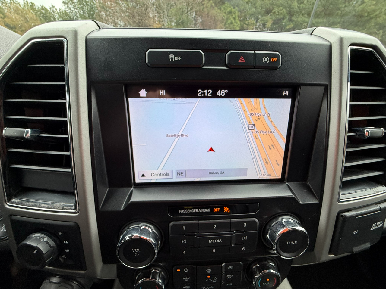 2019 Ford F-150 Lariat 4x4 SuperCrew with 145" wheelbase, Magma Red on Black leather bucket seats, 5.0L V8 with electronic 10-speed automatic transmission and tow mode, equipped with the Lariat 500A package, 18" machined aluminum wheels with flash gray pockets, chrome angular step bars, 3.31 regular axle, 7000 lb GVWR package, pro trailer backup assist, trailer tow package with integrated trailer brake controller, class IV trailer hitch with smart trailer tow connector, voice-activated Navigation, Backup Camera, Bluetooth, 10V/400W outlet, flex-fuel capability, BoxLink, LED box lighting, daytime running lights, fog lamps, auto high beam and autolamp headlamps, fully boxed steel frame, power sliding rear window with defrost and privacy tint, power tailgate lock, pickup box tie-down hooks, gas-charged shocks, intelligent access with push-button start, Sync 3 with 8" touchscreen, FordPass Connect Wi-Fi hotspot, dynamic hitch assist, SelectShift, electric-assist parking brake, pre-collision assist with AEB, trailer sway control, advanced security pack, AdvanceTrac with RSC, front-seat side airbags, Safety Canopy system and SOS Post-Crash Alert. Interior features include 8" productivity screen, leather-trimmed heated and ventilated front bucket seats with console, power driver and passenger seats (10-way with driver memory and lumbar), dual-zone climate control, ambient lighting, adjustable pedals with memory, leather-wrapped steering wheel, auto-dimming rearview mirror, 60/40 fold-up rear bench, and power/heated/power-folding exterior mirrors. Please contact World Auto for more information at 770-921-2775.