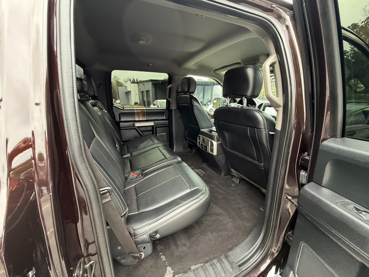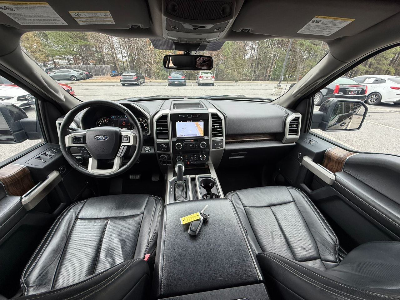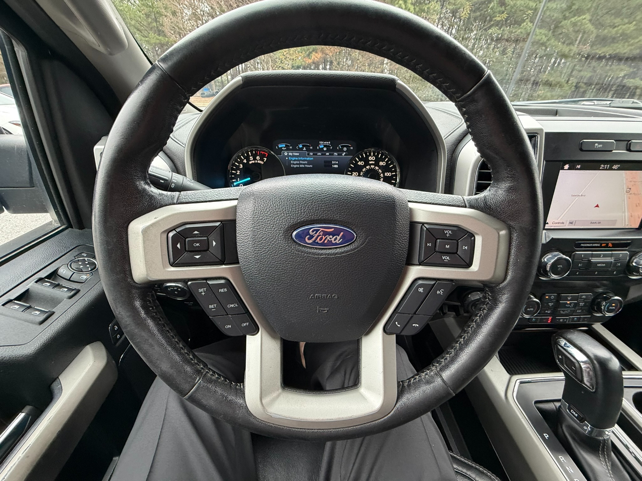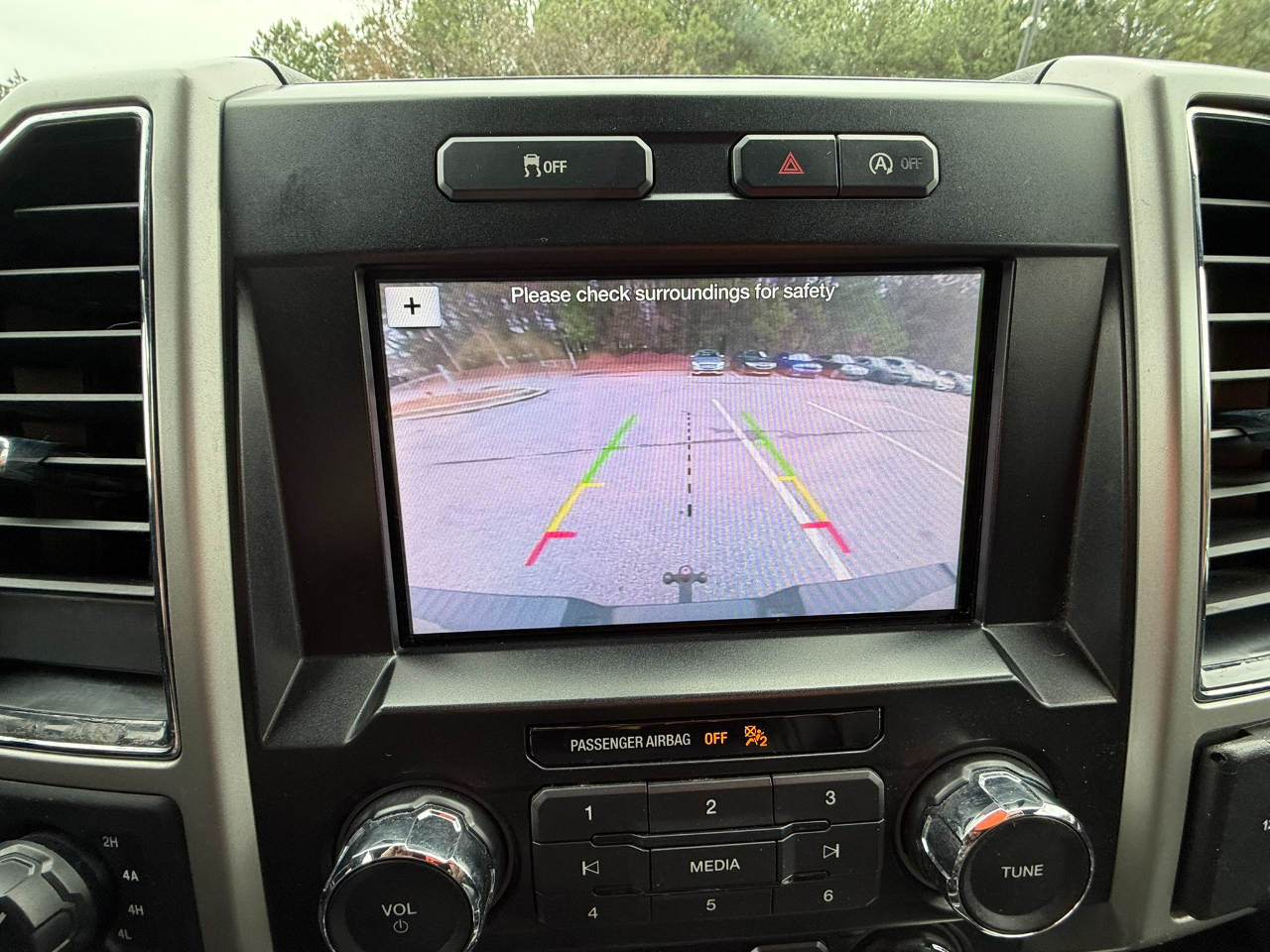 2019 Ford F-150 Lariat 4x4 SuperCrew with 145" wheelbase, Magma Red on Black leather bucket seats, 5.0L V8 with electronic 10-speed automatic transmission and tow mode, equipped with the Lariat 500A package, 18" machined aluminum wheels with flash gray pockets, chrome angular step bars, 3.31 regular axle, 7000 lb GVWR package, pro trailer backup assist, trailer tow package with integrated trailer brake controller, class IV trailer hitch with smart trailer tow connector, voice-activated Navigation, Backup Camera, Bluetooth, 10V/400W outlet, flex-fuel capability, BoxLink, LED box lighting, daytime running lights, fog lamps, auto high beam and autolamp headlamps, fully boxed steel frame, power sliding rear window with defrost and privacy tint, power tailgate lock, pickup box tie-down hooks, gas-charged shocks, intelligent access with push-button start, Sync 3 with 8" touchscreen, FordPass Connect Wi-Fi hotspot, dynamic hitch assist, SelectShift, electric-assist parking brake, pre-collision assist with AEB, trailer sway control, advanced security pack, AdvanceTrac with RSC, front-seat side airbags, Safety Canopy system and SOS Post-Crash Alert. Interior features include 8" productivity screen, leather-trimmed heated and ventilated front bucket seats with console, power driver and passenger seats (10-way with driver memory and lumbar), dual-zone climate control, ambient lighting, adjustable pedals with memory, leather-wrapped steering wheel, auto-dimming rearview mirror, 60/40 fold-up rear bench, and power/heated/power-folding exterior mirrors. Please contact World Auto for more information at 770-921-2775.
