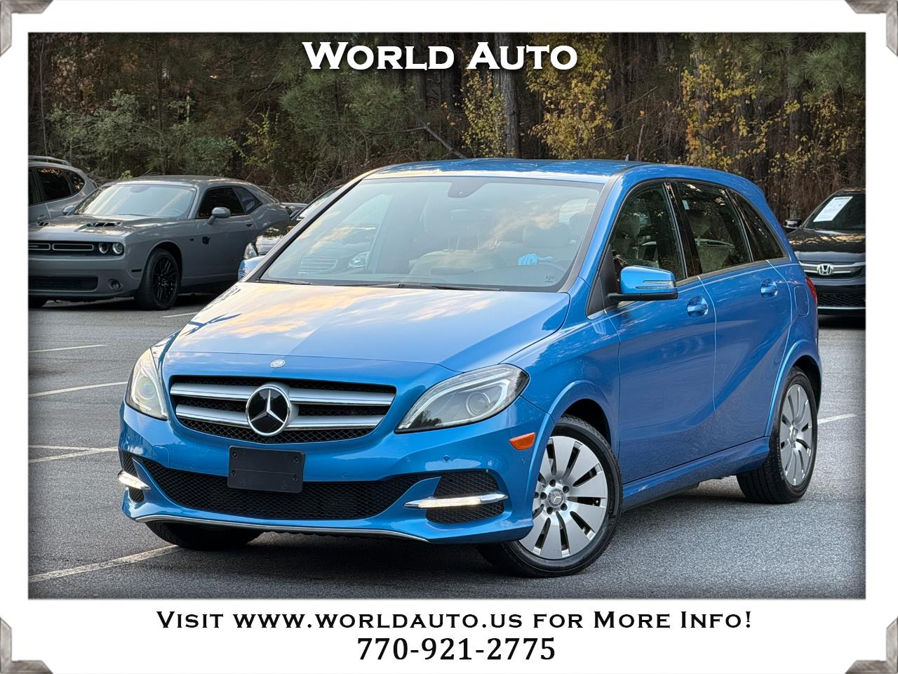2014 Mercedes-Benz B250e, South Seas Blue Metallic on Premium Interior, Automatic, featuring the Premium Package With Garage Door Opener, Compass, Heated Seats, Auto Dimming Mirrors, Harman/Kardon Sound System, SiriusXM Satellite Radio, Bi-Xenon Headlamps, and iPod/MP3 Media Interface. Multimedia Package adds Rear View Camera and COMAND System With Hard-Drive Navigation for enhanced convenience and connectivity. Additional features include Recuperation Paddles, Burl Walnut Wood Trim (Matte), Blind Spot Assist, and Parktronic With Park Assist for confident maneuvering. Please contact World Auto for more information at 770-921-2775.